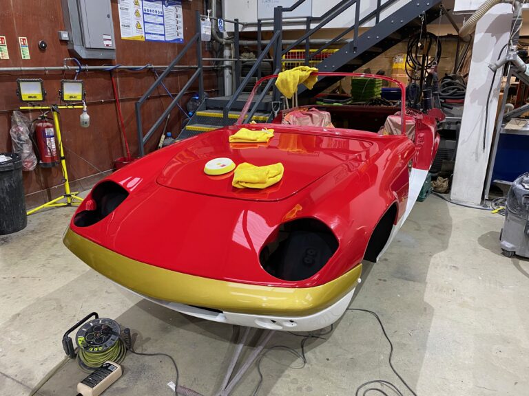 The body was trusted to our partners at Beaconsfield workshop who took it down to bare glass fibre before painstaking preparation and paintwork.